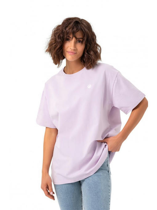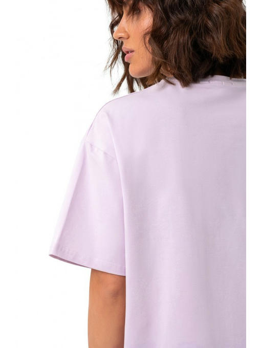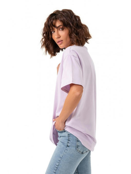 Футболка с неглубокой горловиной круглой формы. Спущенный рукав. Средняя длина. Свободный крой. Лицевую сторону украшает небольшой, едва заметный, вышитый логотип.