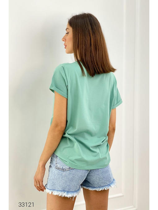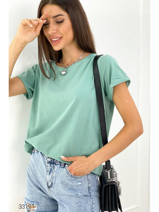 Базовая однотонная футболка свободного кроя. Размер универсальный, подходит на 42 – 46.