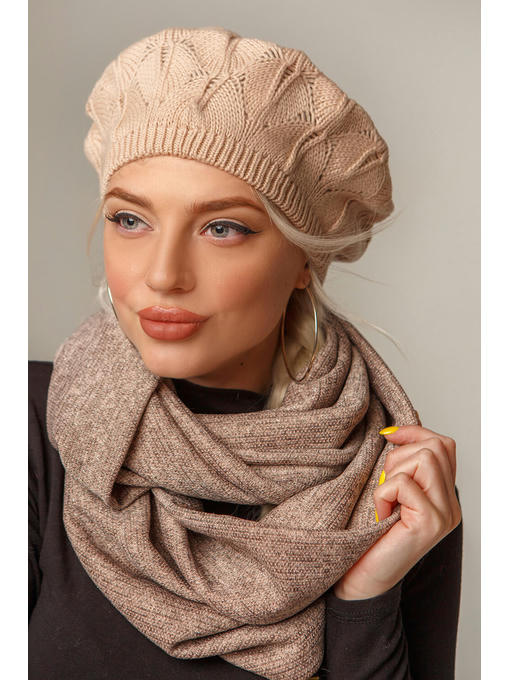 Белая двойная шапка Бант с украшением на зиму