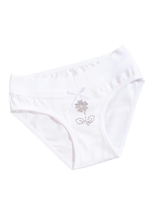 Детские белые однотонные трусы для девочек украшены аппликацией из страз. Слипы сохраняют прекрасный внешний вид даже после частых стирок. Все швы ровные, гладкие. Трусики Байкар для девочек не сковывают движений, обеспечивая комфорт в течение всего дня.