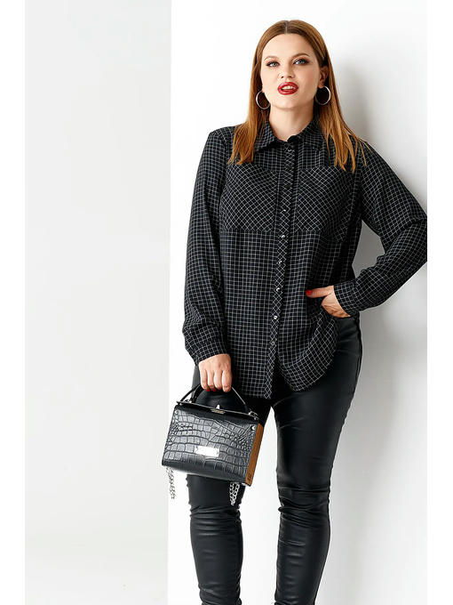 Стильная,молодёжная рубашка прямого силуэта. Приятная ,струящаяся ткань не мнётся и дарит чувство комфорта.Воротник рубашечный ,отложной ,на стойке. Спереди застёжка центральная на планку с петлями и пуговицами. Рукава втачные ,длинные, с отрезным,застёгивающимся на пуговицу манжетом по низу . По переду на уровне груди выполнены накладные карманы. Линия низа блузки фигурной округлой формыПо бокам выполнены вставки. Блузка будет эффектным и практичным вариантом на каждый день для энергичной девушки