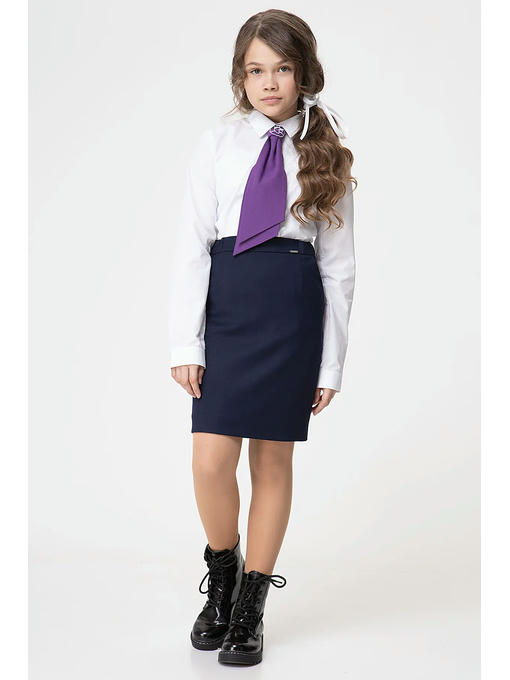 Блузка для девочки повседневная, из смесовой сорочечной ткани. Блузка полуприлегающего силуэта, с центральной застежкой на петли и пуговицы и одну петлю и пуговицу на воротнике. Перед и спинка с талиевыми вытачками, которые обеспечивают прилегание изделия по фигуре. Спинка с горизонтальной кокеткой и двумя небольшими складочками. Рукава втачные одношовные с притачными манжетами, застегивающимися на петлю и пуговицу. По швам притачивания манжет закладываются складочки. Разрез рукавов обработан английской планкой. Воротник сорочечный с отрезной стойкой