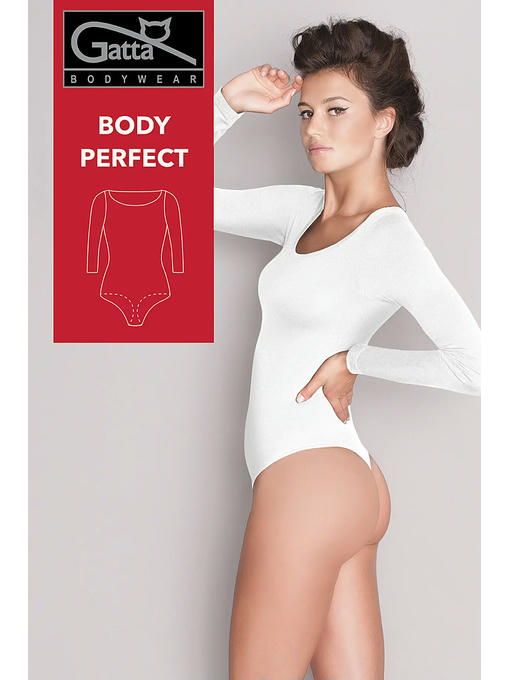 Однотонное бесшовное боди с длинным рукавом и объемным круглым вырезом. Трусики модели выполнены в виде стрингов, что обеспечивает максимальный комфорт в сочетании с плотно облегающей одеждой