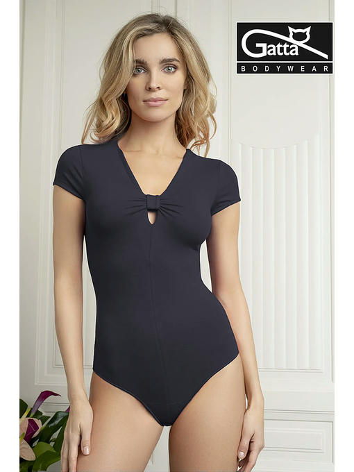 Элегантное хлопковое боди с коротким рукавом и глубоким V-образным вырезом с декоративной перемычкой. Верхняя часть модели имитирует обычную блузку, за счет чего она идеально подходит для комбинирования с повседневными образами