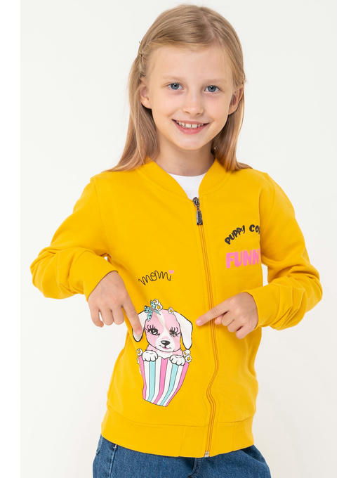 Детский бомбер из футера для девочки изготовлен из натурального 100 % хлопка. Свободный крой обеспечивает комфортную посадку. Усиленный ворот-шалька, длинный рукав, застежка на молнию. Хлопковый бомбер украшен рисунком щенок. Отлично подойдет в качестве повседневной и школьной одежды.