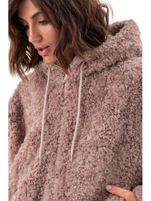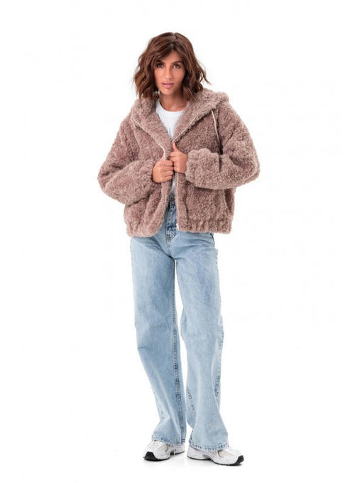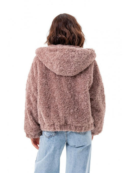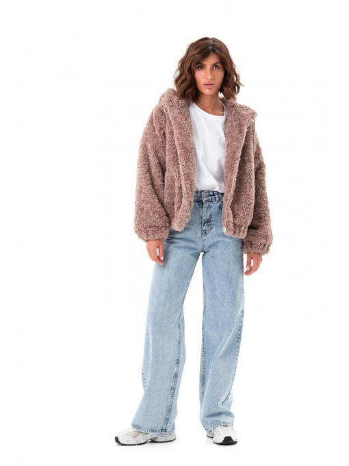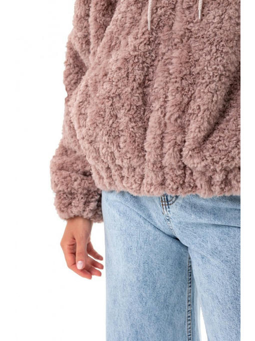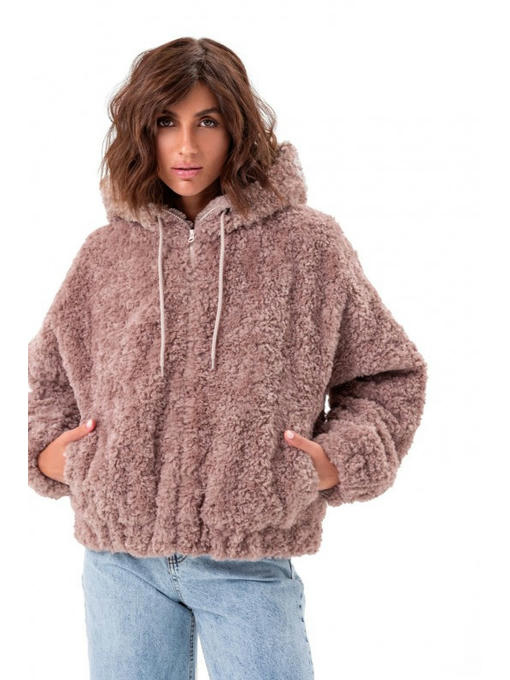 Бомбер сделан из пушистой и тепленькой эко ткани, имитирующей шерсть баранчика. Модель свободного фасона, потому в оверсайзе вы будете ощущать себя комфортно.