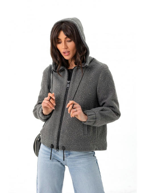 Бомбер понравится тем, кто давно искал себе практичную кофту на молнии для повседневного гардероба. Свободный крой, короткая длина. Воротник-стойка застегивается под горло с помощью молнии. Удобный капюшон, вокруг которого проходит кулиска. Такая же кулиска с фиксатором есть по низу. Спущенное плечо, рукава на резинке. Карманы прорезные.