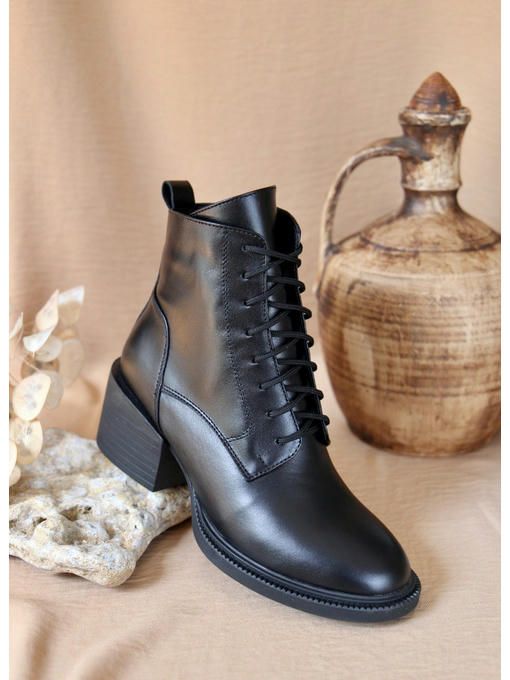 Ботильоны выполнены из натуральной кожи – отличная пара на каждый день. Материал подкладки и стельки – натуральная шерсть. Подошва ТЭП – прочная и гибкая, высота каблука 6 сантиметров. Удобство и комфорт Вашим ножкам обеспечен на протяжении всего дня