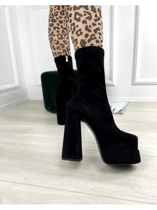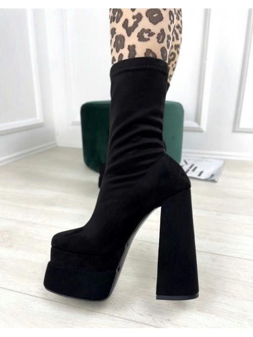 Ботильоны на высоком каблуке с квадраным носком. Высота подошвы спереди: 5,5 см.; Высота каблука 14,5 см.; Высота от пятки 20,5 см.; Размерная сетка: 35-22,5; 36-23,5; 37-24; 38-24,5; 39-25,5