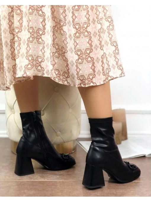 Ботильоны с брошкой на носке. Высота каблука 7 см.; Высота от пятки 14,5 см.; Размерная сетка: 35-23; 36-23,5; 37-24; 38-24,5; 39-25,5 см.