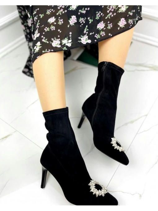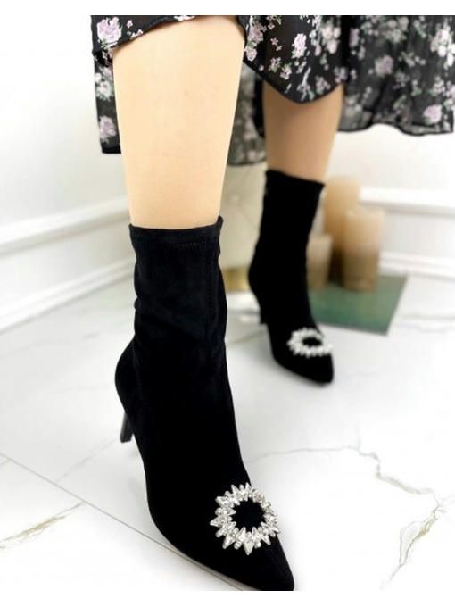 Ботильоны стрейчевые с украшнием на носке. Каблук 8 см.Высота от пятки 16 см. Размерная сетка: 36-23,5; 37-24; 38-24,5; 39-25,5; 40- 26; 41-26,5 см.