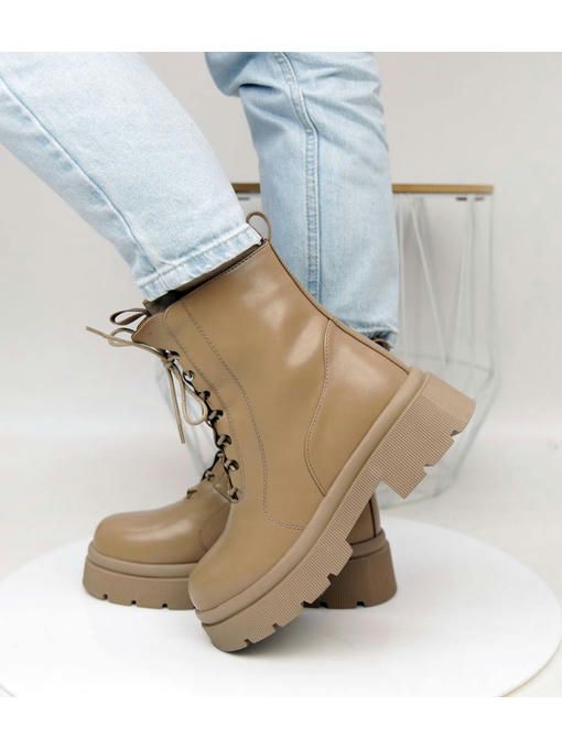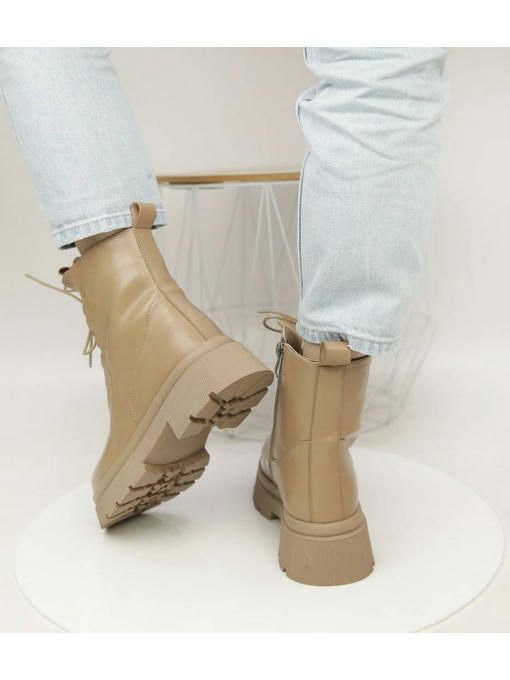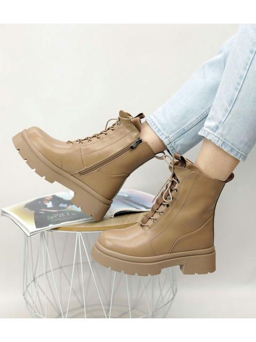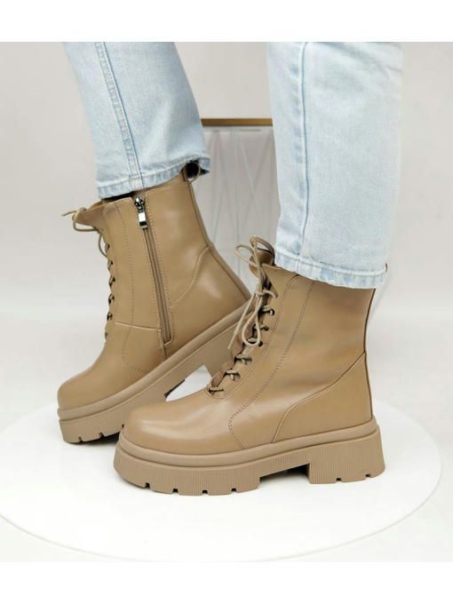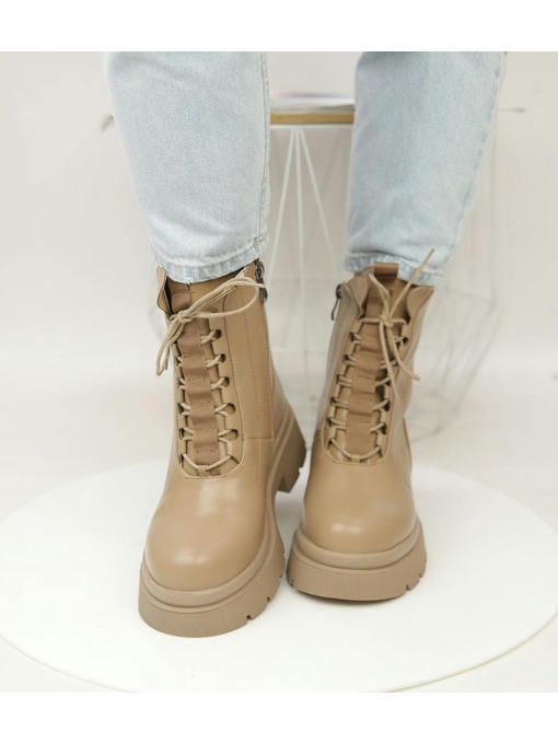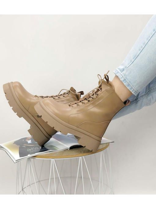 Бежевые ботинки из экокожи. Невероятно стильная, практичная и легкая пара. Внутри утепленные искусственным мехом. Ботинки подойдут для ежедневного использования, с ними каждый образ будет более удачным.