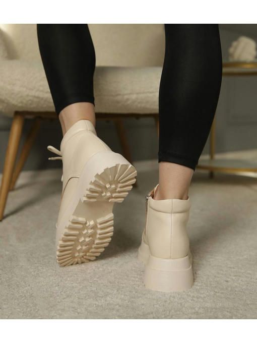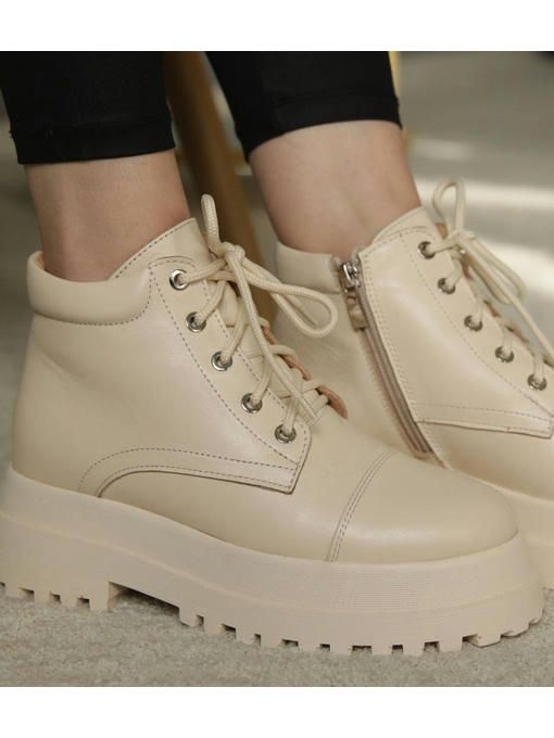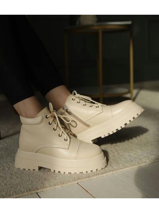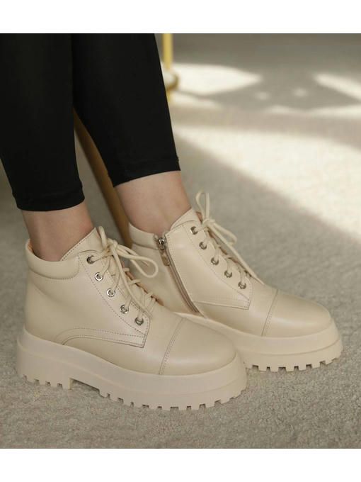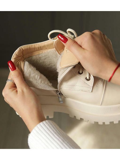 Универсальная модель ботинок в бежевом цвете. Пара стильная, выполнена из натуральной кожи. Внутренняя подкладка из меха, очень приятная на ощупь, стелька меховая, удобная. Пара невероятно комфортно ощущается на ножках. Ботинки MILLI Gold на замке, легко и быстро обуваются и прекрасно подойдут под любой Ваш образ.