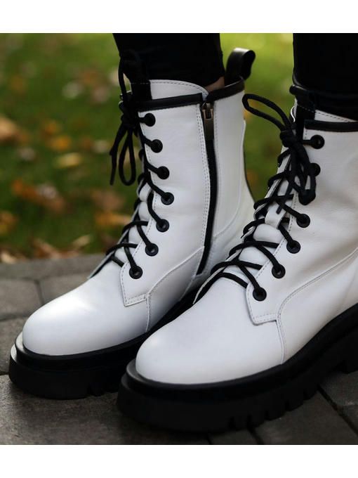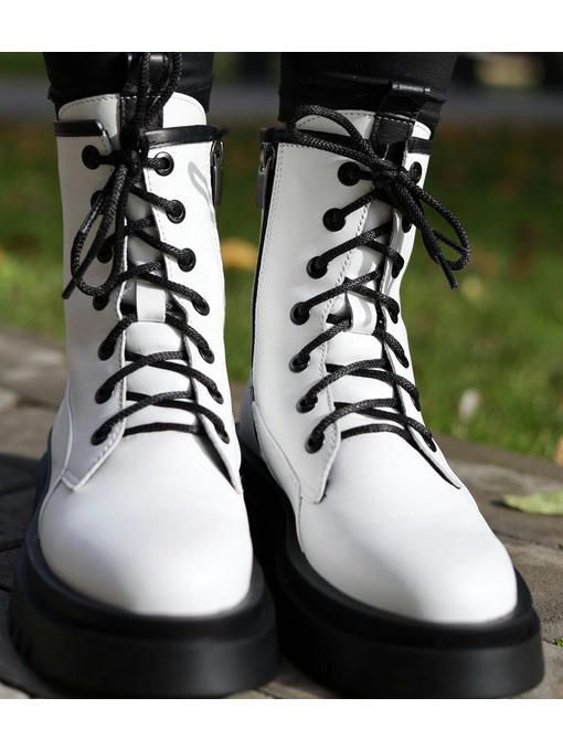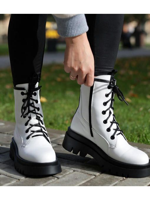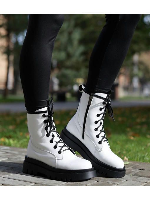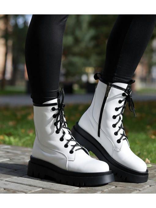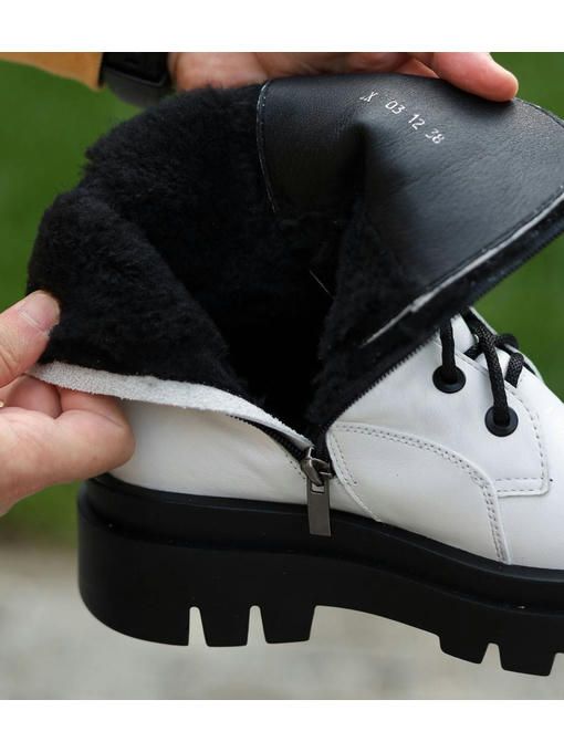Универсальная модель ботинок в белом цвете, выполнены из натуральной кожи. Пара стильная и легкая. Внутренняя подкладка из меха, очень приятная на ощупь, стелька утепленная, удобная. Пара невероятно комфортно ощущается на ножках. Ботинки на замку, легко и быстро обуваются и прекрасно подойдут под любой Ваш образ.