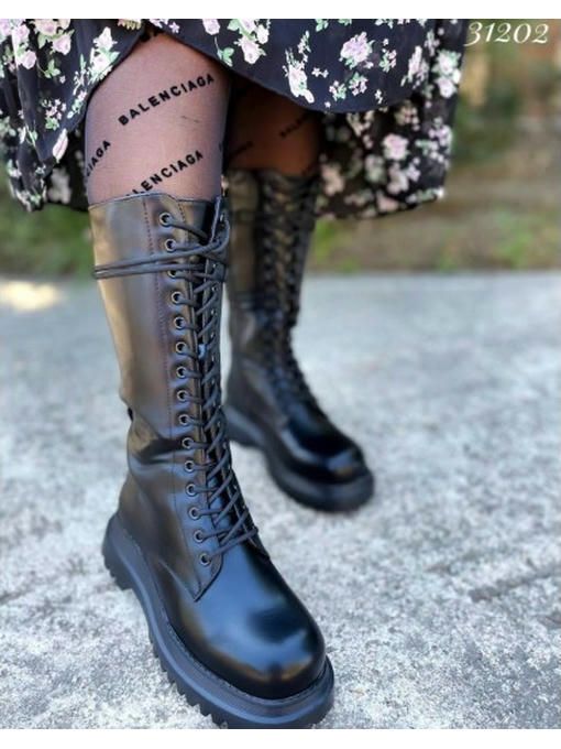 Ботинки высокие на шнуровке демисезонные. Утеплены флисом. Подошва спереди:3 см. Сзади подошва:5 см.; Высота от пятки: 27 см.; Размерная сетка: 36-23,5; 37-24; 38-24,5; 39-25,5; 40 – 26; 41-26,5 см.;