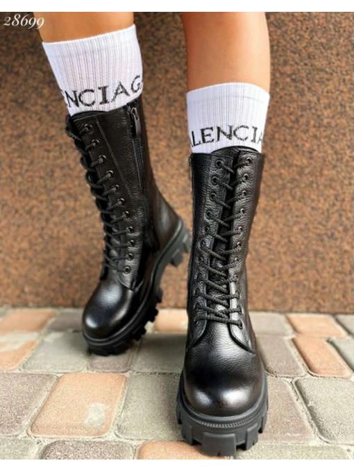 Ботинки высокие на шнуровке; Модель доступна как в демисезонном так и в зимнем варианте; Люкс качество; Высота подошвы сзади: 5,5 см.; Высота спереди: 3,5 см.; Высота изделия от пятки:22 см.; Размерная сетка: 36-23,5; 37-24; 38-24,5; 39-25,5; 40-26 см.