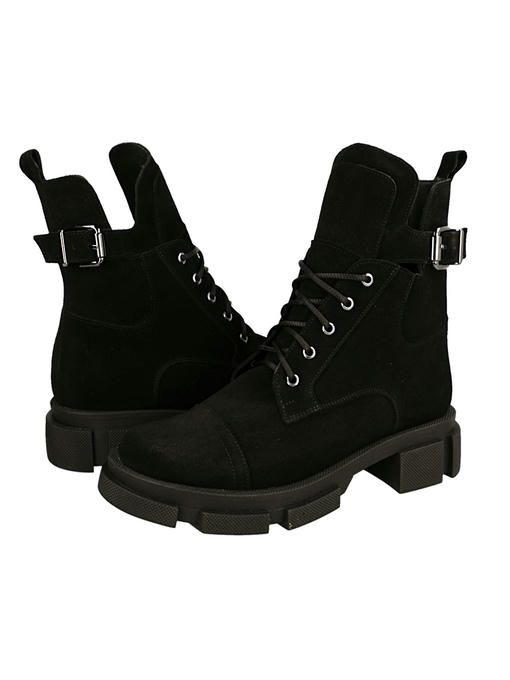 Ботинки выполнены из натуральной замши – отличная пара на каждый день. Материал подкладки и стельки – байка. Подошва ТЭП – прочная и гибкая, высота каблука 4,5 сантиметра. Удобство и комфорт Вашим ножкам обеспечен на протяжении всего дня