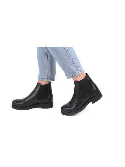 Челси от бренда –незаменимая модель обуви в женском гардеробе! Верх выполнен из натуральной кожи черного цвета, внутри ботинки утеплены байковой подкладкой, которая позволяет Вашим ножкам ощущать тепло и комфорт на протяжении всего дня! По бокам расположены эластичные резинки! Челси – универсальная модель ботинок, которая отлично подойдет как для повседневного стиля одежды, так и для делового