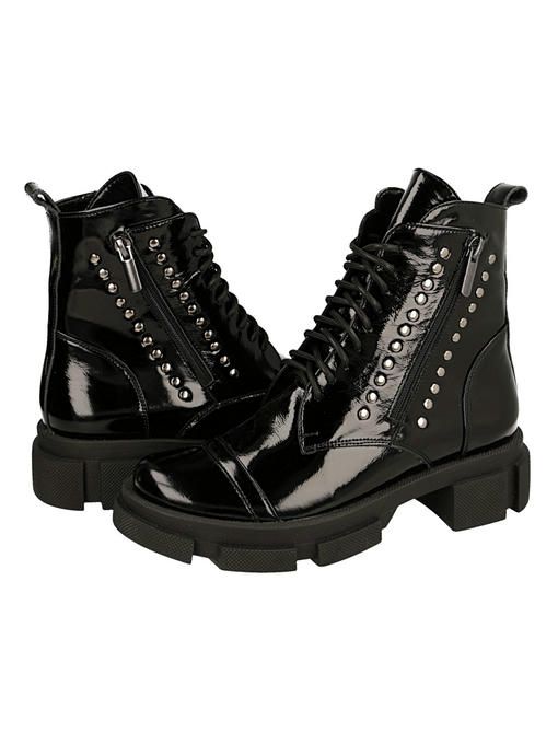 Ботинки выполнены из натуральной лаковой кожи – отличная пара на каждый день. Материал подкладки и стельки – байка. Подошва ТЭП – прочная и гибкая, высота каблука 4,5 сантиметра. Удобство и комфорт Вашим ножкам обеспечен на протяжении всего дня