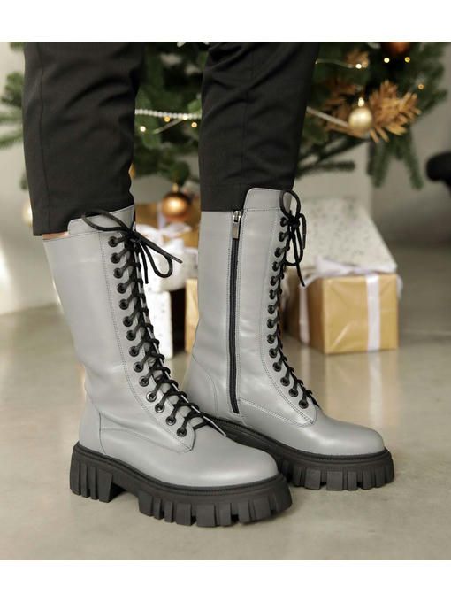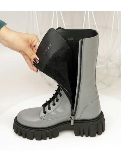 Универсальная модель ботинок Серые, выполнены из натуральной кожи. Внутренняя подкладка из меха, очень приятная на ощупь, стелька утепленная, удобная. Пара невероятно стильная, комфортно ощущается на ножках. Ботинки на замке, легко и быстро обуваются и прекрасно подойдут под любой Ваш образ.