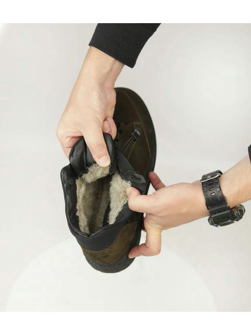 Стильные ботинки в универсальном цвете хаки, изготовлены из нубука. Внутренняя подкладка из меха, стелька меховая. Износостойкая подошва делает ботинки максимально комфортными. Невероятно удобная, стильная модель на резинке, подойдут к любому Вашему образу, как на каждый день, так и на выход.