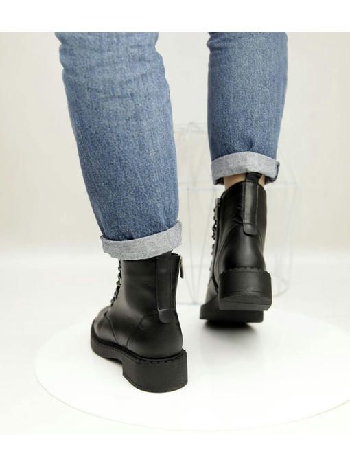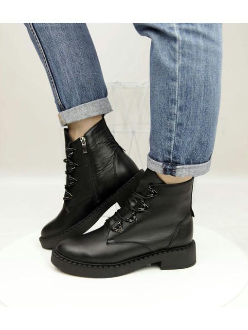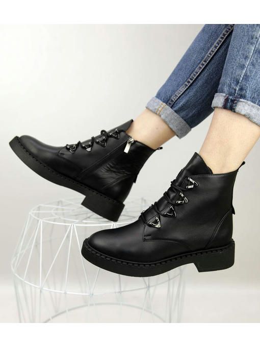Универсальная модель ботинок в черном цвете. Пара выполнена из натуральной кожи, вес полупарка всего 425 грамм. Внутренняя подкладка из байки, очень приятная на ощупь, стелька удобная, утепленная. Пара невероятно комфортно ощущается на ножках. Ботинки на замке, легко и быстро обуваются и прекрасно подойдут под любой Ваш образ.
