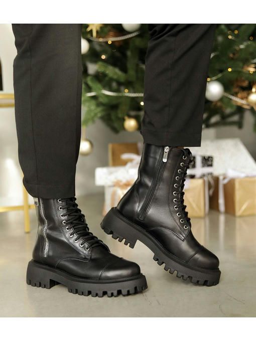 Универсальная модель ботинок в черном цвете. Пара стильная, выполнена из натуральной кожи, вес полупарка 610 грамм. Внутренняя подкладка из меха, очень приятная на ощупь, стелька меховая, удобная. Пара невероятно комфортно ощущается на ножках. Ботинки MILLI Gold на замке, легко и быстро обуваются и прекрасно подойдут под любой Ваш образ.