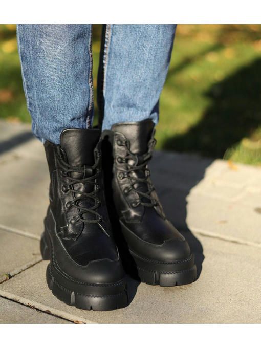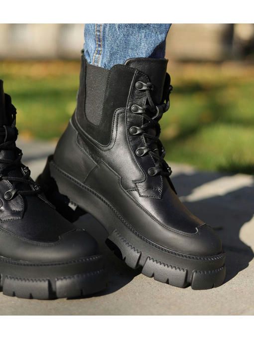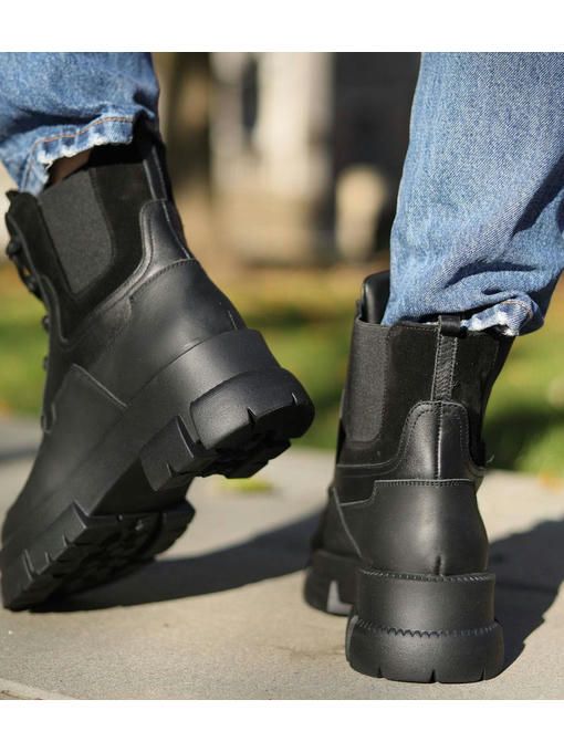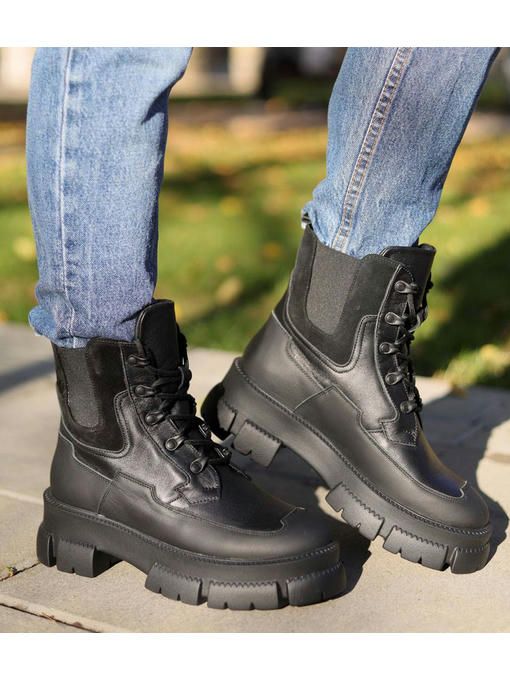 Универсальная модель ботинок в черном цвете, выполнены из натуральной кожи. Пара стильная и легкая. Внутренняя подкладка из меха, очень приятная на ощупь, стелька утепленная, удобная. Пара невероятно комфортно ощущается на ножках. Ботинки на резинке, легко и быстро обуваются и прекрасно подойдут под любой Ваш образ.