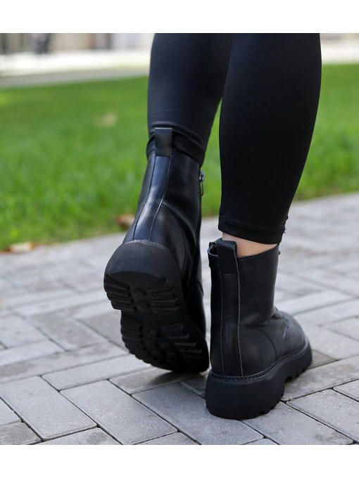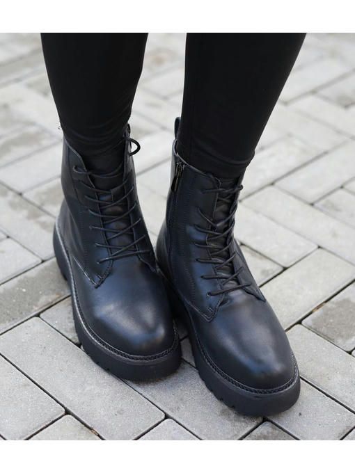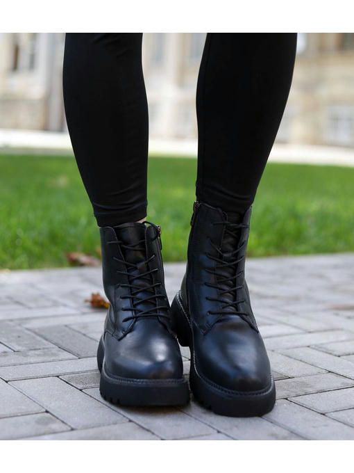 Универсальная модель ботинок в черном цвете. Пара качественная, выполнена из натуральной кожи. Внутренняя подкладка из меха, очень приятная на ощупь, невероятно комфортно ощущается на ножках. Массивная подошва круто подчеркивает модель. Ботинки на замке, легко и быстро обуваются и прекрасно подойдут под любой Ваш образ.