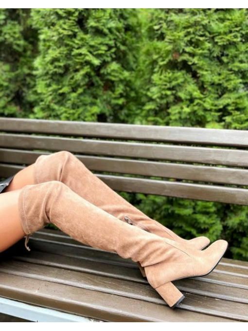 Ботфорты на каблуке, сверху на затяжке. Утеплены флисом до косточки. Высота каблука:6 см.Высота от пятки 57 см. Размерная сетка: 36-23,5; 37-24; 38-24,5; 39-25,5; 40- 26 см.