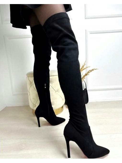 Ботфорты чулки с узким носком. Без утеплителя. Высота шпильки 10 см. Высота от пятки 62 см. Размерная сетка: 36-23,5; 37-24; 38-24,5; 39-25; 40- 26 см.