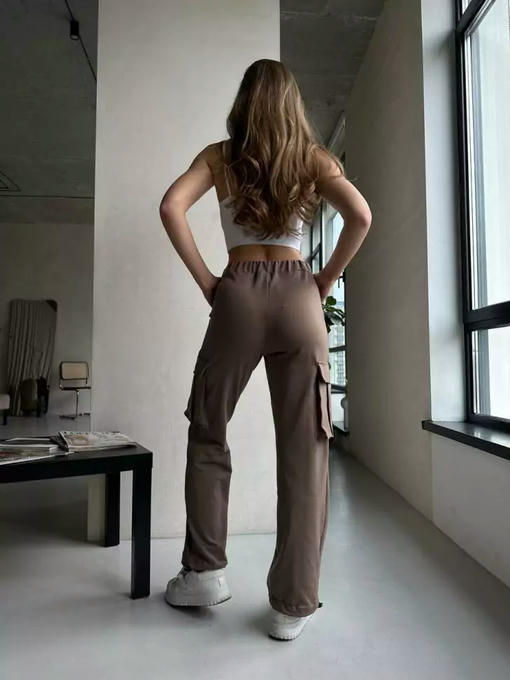 Хит сезона, самая популярная модель.Снизу штаны регулируются резинкой, имеют два кармана сверху и два накладных кармана.Идеальная посадкаТкань: двунитка
