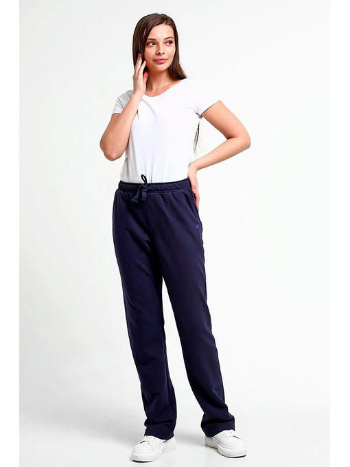 Классические женские трикотажные брюки Regular fit, выполнены из хлопкового полотна с добавлением полиэстера. Приятны при контакте с кожей, не сковывают движения. В боковых швах глубокие карманы. Сзади брюки стилизованы под джинсы. В поясе брюки собираются широкой резинкой. Дополнительно в поясе имеется шнур