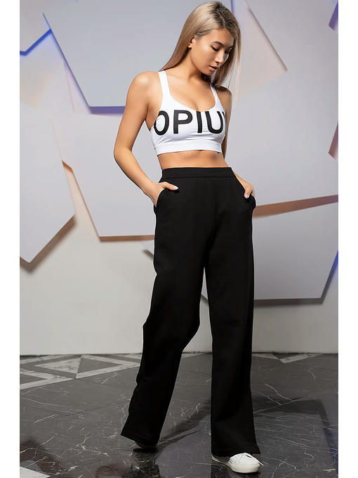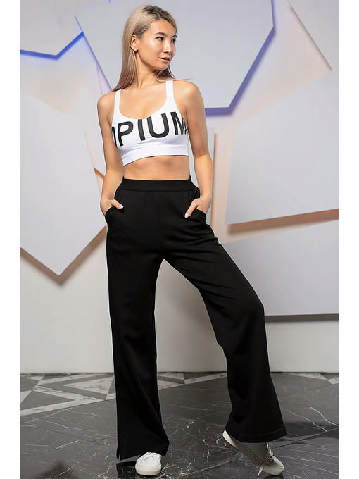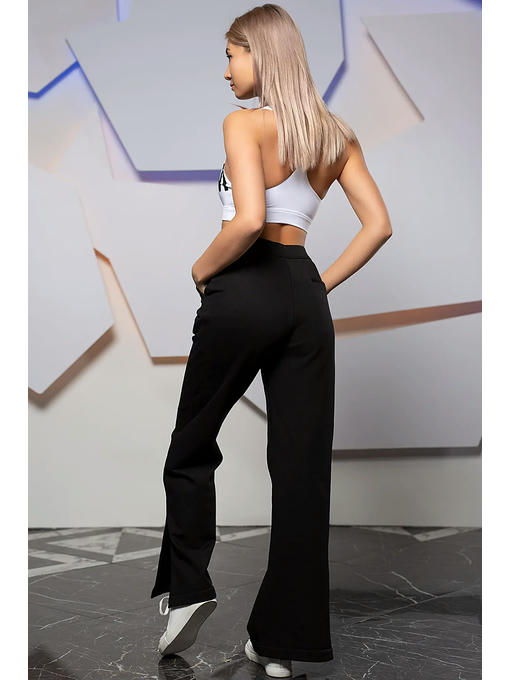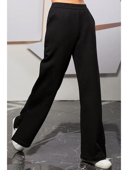 Женские брюки в спортивном стиле, прямого силуэта, с высокой талией, на резинке. Выполнены из гладкого плотного трикотажа с объемным плетением с внутренней стороны, что позволяет носить их в прохладный сезон. Имеются удобные внутренние карманы спереди и один прорезной кармашек сзади. Разрезы в боковых швах придают шика этой модели и позволяют приоткрыть модную спортивную обувь. Удобство и элегантность этой модели будут, несомненно, оценены их обладательницей. Важно только правильно подобрать рост и размер. Эти брюки не подойдут девушкам выше 175см, т.к. красиво смотрятся, когда почти полностью прикрывают обувь