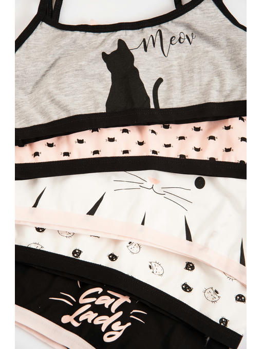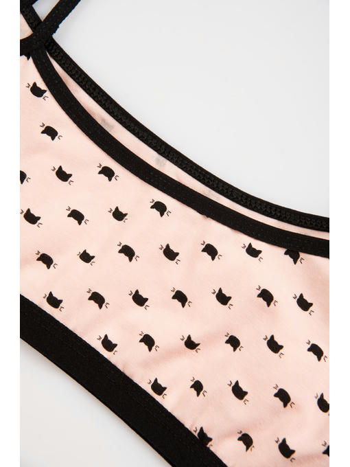 Бюстики для девочек подростков на тонких бретелях, эластичная резинка по низу, декорированы принтами коты. Бюстик для девочек подростков выполнен из хлопкового материала, гигроскопичного, мягкого, гипоаллергенного.