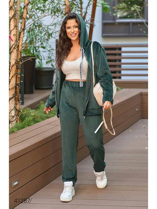 Велюровый женский костюм. Ткань: велюр (Турция). Ориентировочные замеры по готовому изделию: 50 – 52 (Кофта: ОГ 124, ОТ 108, длиина 69, длина рукава 62. Штаны: ОТ 76 – 136, ОБ 116, длина 107), 52 – 54 (Кофта: ОГ 128, ОТ 112, длиина 69, длина рукава 62. Штаны: ОТ 78 – 138, ОБ 120, длина 107), 54 – 56 (Кофта: ОГ 132, ОТ 116, длиина 70, длина рукава 62. Штаны: ОТ 82 – 142, ОБ 124, длина 108), 56 – 58 (Кофта: ОГ 136, ОТ 120, длиина 70, длина рукава 62. Штаны: ОТ 86 – 146, ОБ 128, длина 108)