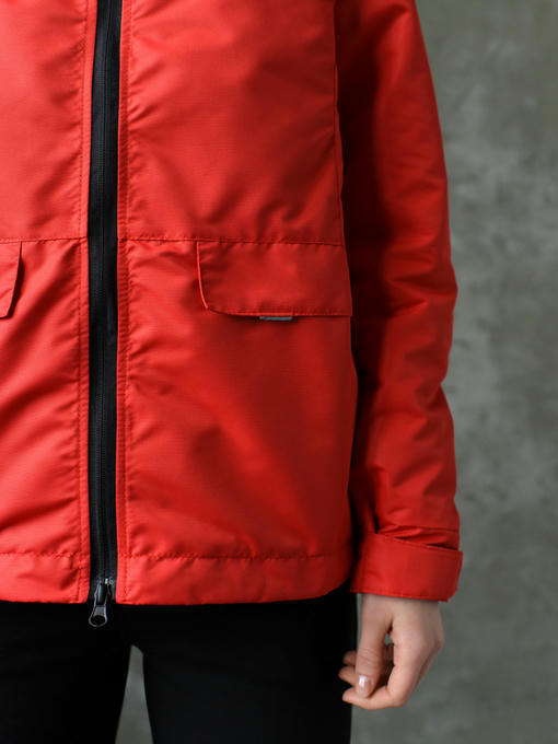 Женская ветровка – классический вариант на теплое время года. Два внешних кармана под клапанами, один внутренний карман на молнии. Манжеты на липучке. Низ и капюшон стигиваются с помощью фиксаторов.