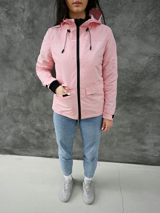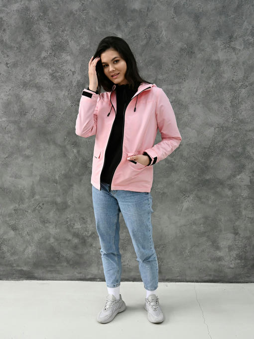 Женская ветровка – классический вариант на теплое время года. Два внешних кармана под клапанами, один внутренний карман на молнии. Манжеты на липучке. Низ и капюшон стигиваются с помощью фиксаторов.