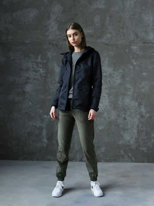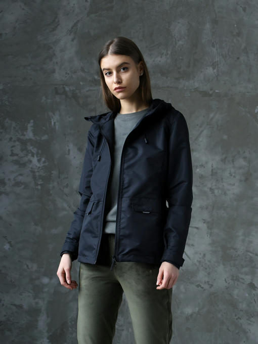 Женская ветровка – классический вариант на теплое время года. Два внешних кармана под клапанами, один внутренний карман на молнии. Манжеты на липучке. Низ и капюшон стигиваются с помощью фиксаторов.