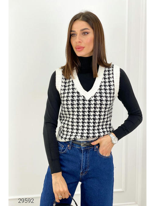 Вязаный жилет с узором гусиная лапка