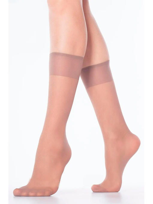 Прозрачные матовые гольфы плотностью 20 ден, с комфортной широкой резинкой и укрепленным мыском. В конверте 2 пары