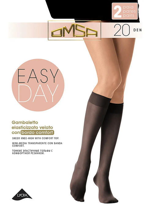 Прозрачные шелковистые гольфы плотностью 20 ден, с лайкрой, резинка широкая и комфортная. В конверте 2 пары