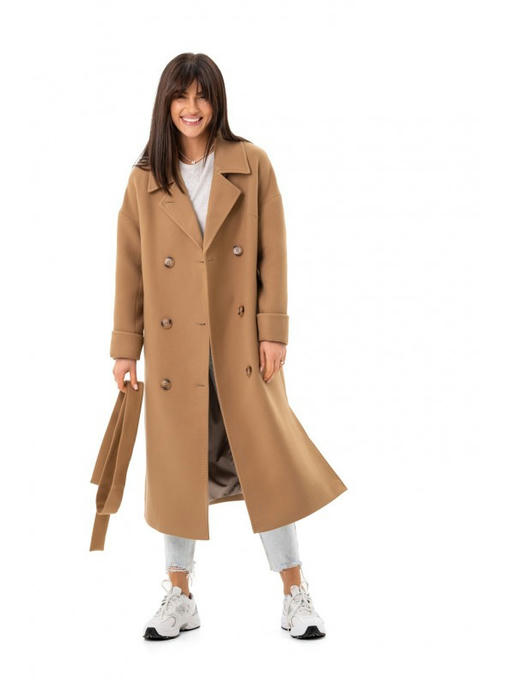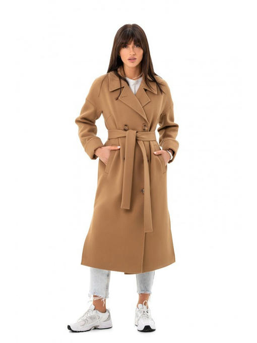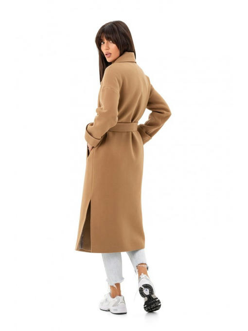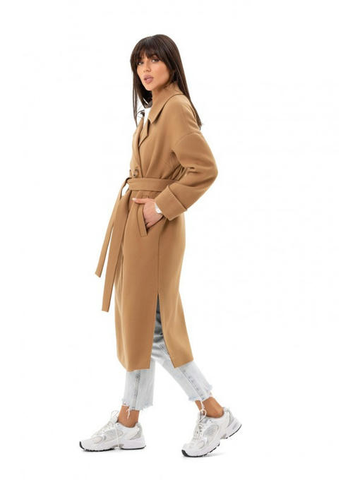 Длина пальто – ниже колена. Изюминка изделия – разрезы по бокам. Демисезонное пальто прямого фасона красиво смотрится как с поясом, так и без него.