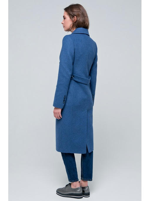 Со стороны спинки длинного пальто можно увидеть хлястик с пуговицами в местах крепления, который размещен на уровне талии. Благодаря шлице, разрезу в среднем заднем шве, пальто не стесняет шаг.