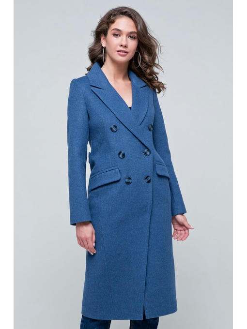 Двубортное пальто сшито из шерстяной ткани с подкладкой из полиэстера. Центр внимания – внешние двухцветные пуговицы, расположенные в два ряда. Модель застегивается как пуговицами, так и кнопками.