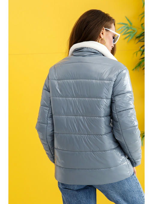 Демисезонная укороченная куртка из плащевой ткани «монклер» с отделкой из искусственной овчины.