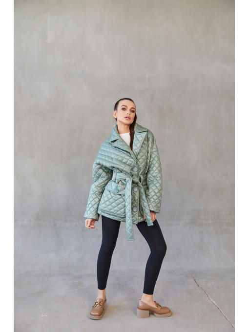 Демисезонная стеганая куртка с накладными карманами.