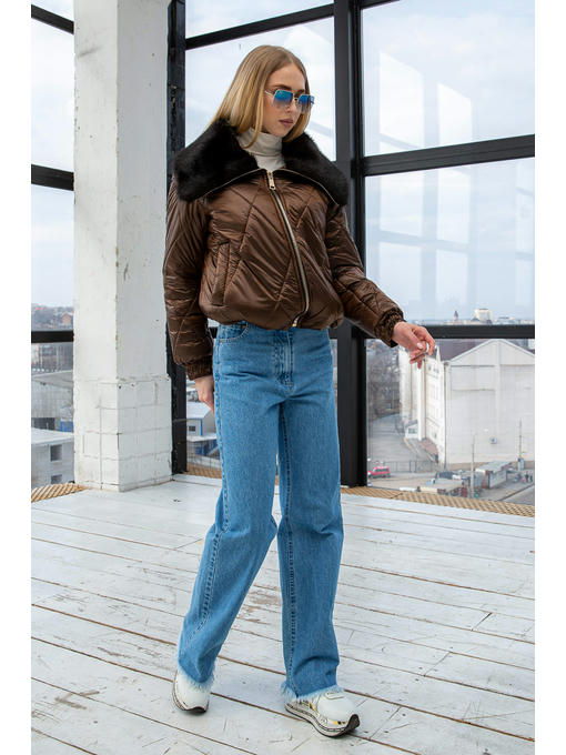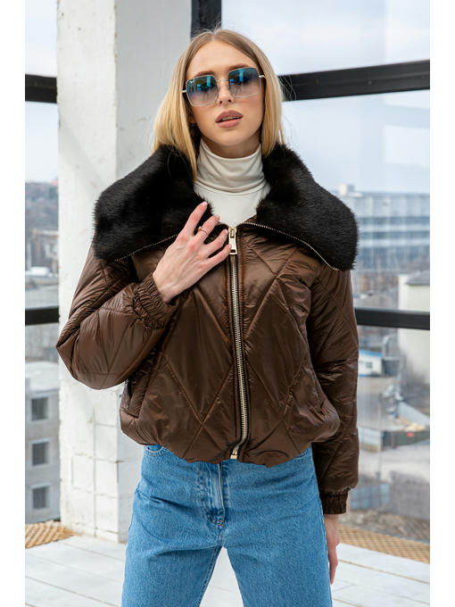 Демисезонная стеганная куртка из водоотталкивающей плащевки с воротником из искусственного меха.