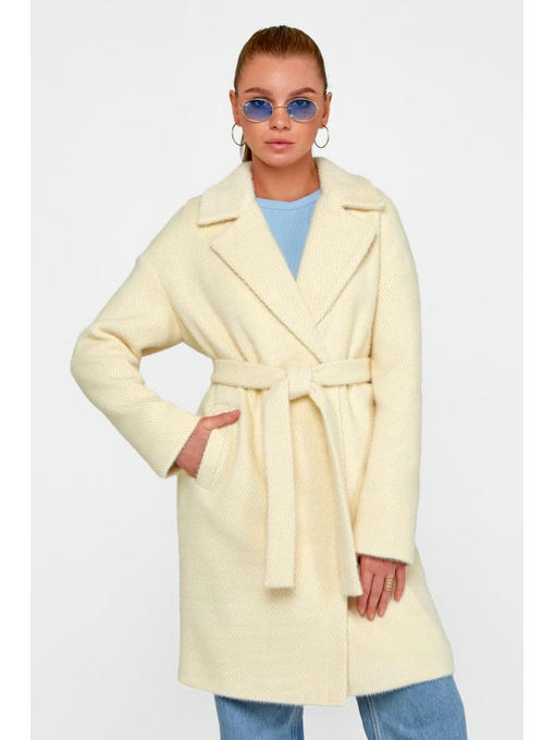 Демисезонное пальто из ткани с плетением, напоминающее соты. Очень мягкая ткань, приятная к телу. Модель без внешней фурнитуры, застежка – потайные кнопки. Отложной воротник. Рукава со пущенным плечом. Прорезные карманы. Модель максимально лаконичная, без лишних деталей. Есть пояс.