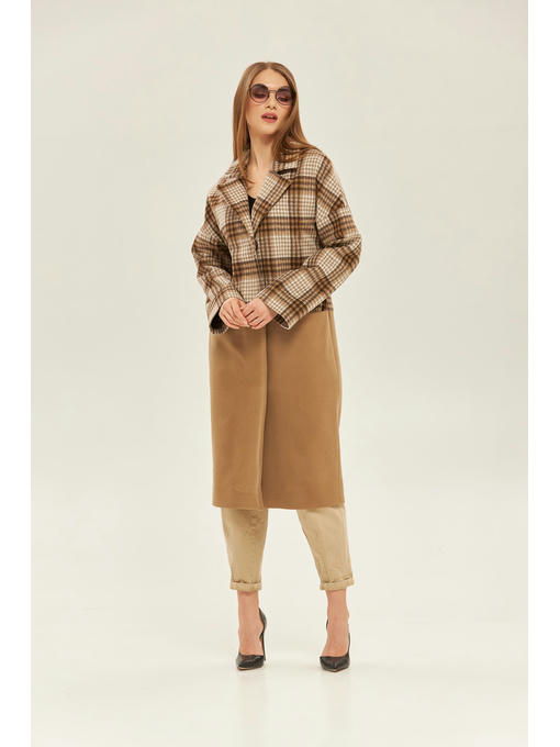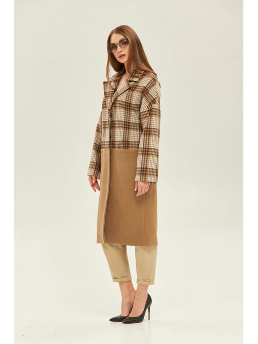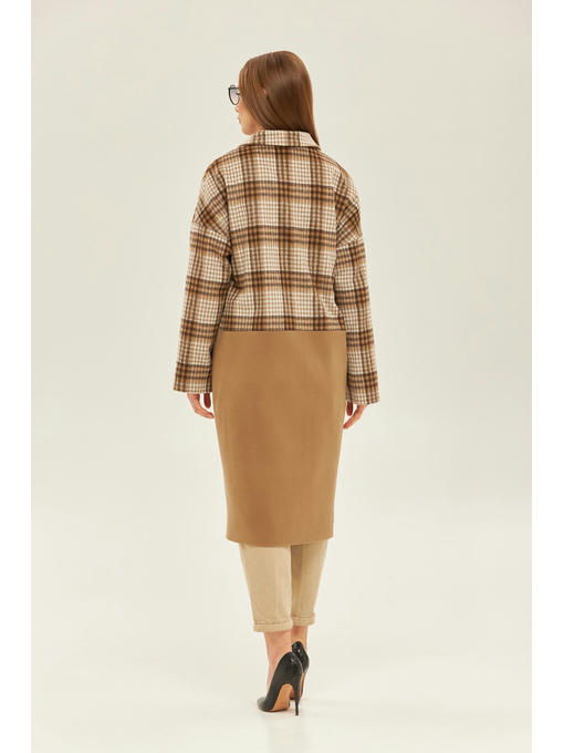Демисезонное пальто из пальтовой клетки и кашемировой отделкой